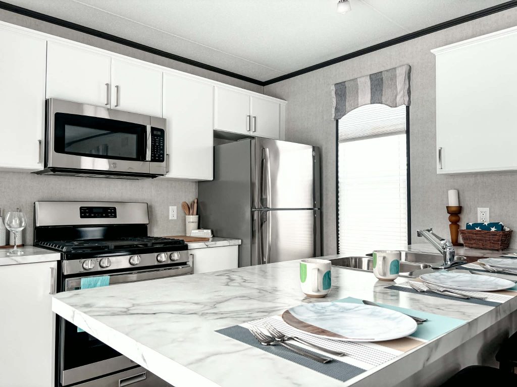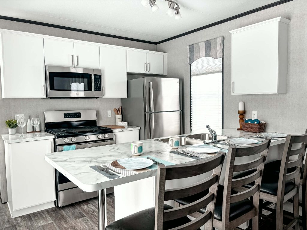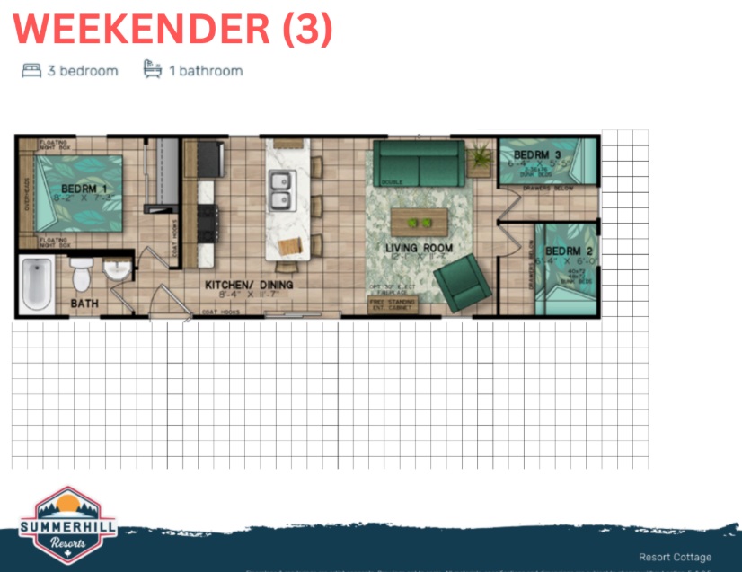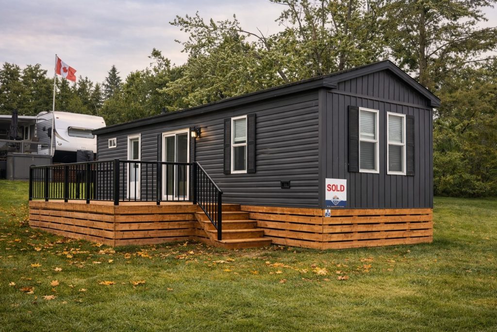 Each Weekender is turn-key ready for your Canadian Cottage Summer experience with all furnishings, appliances, HVAC, and a large 160 sq.ft skirted deck with upgraded aluminum rails!